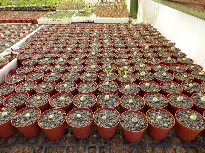 Pachypodium brevicaule ssp. brevicaule wurden im letzten Jahr ausgesät, ca. 20 Pflanzen wurden vor ca. 10 Tagen auf