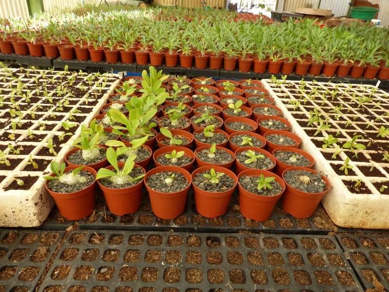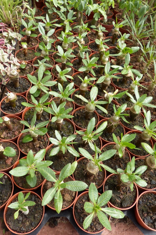 Unterlagen waren Pachypodium lamerei, ca. ein Jahr alt und die Sämlinge weniger als ein Jahr, fast alle sind