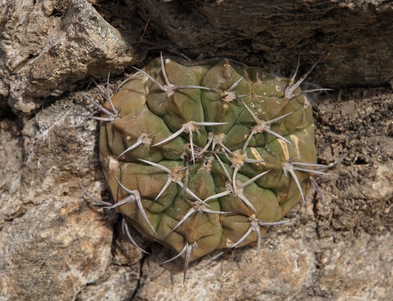 Ich bin der Meinung, dass beide Arten eine enge Verwandschaft zu G.stellatum haben. Es handelt sich vermutlich um eine entwicklungsgeschichtliche Anpassung an die extremen Umweltbedingungen hier bei den Salinas Grandes. Manche Autoren stellen daher G.obductum auch synonym zu G.ragonesei. Dies geht mir aber entschieden zu weit - G.obductum scheint mir da eher ein Bindeglied zwischen stellatum und ragonesei zu sein. Entschuldigt meinen persönlichen Fantasienamen, aber durch meine Zuordnung zu ragonesei habe ich für mich eine Abgrenzung zum Rest der stellatum/quehlianum Sippschaft erfunden.