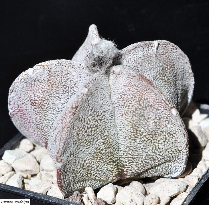 Sulcorebutia spec. HS 213 - das Kindel der zuvor gezeigten Pflanze. Kurios ist, dass beim Ausbilden der Areolen im unteren Bereich dieser kleine Blättchen entstehen.