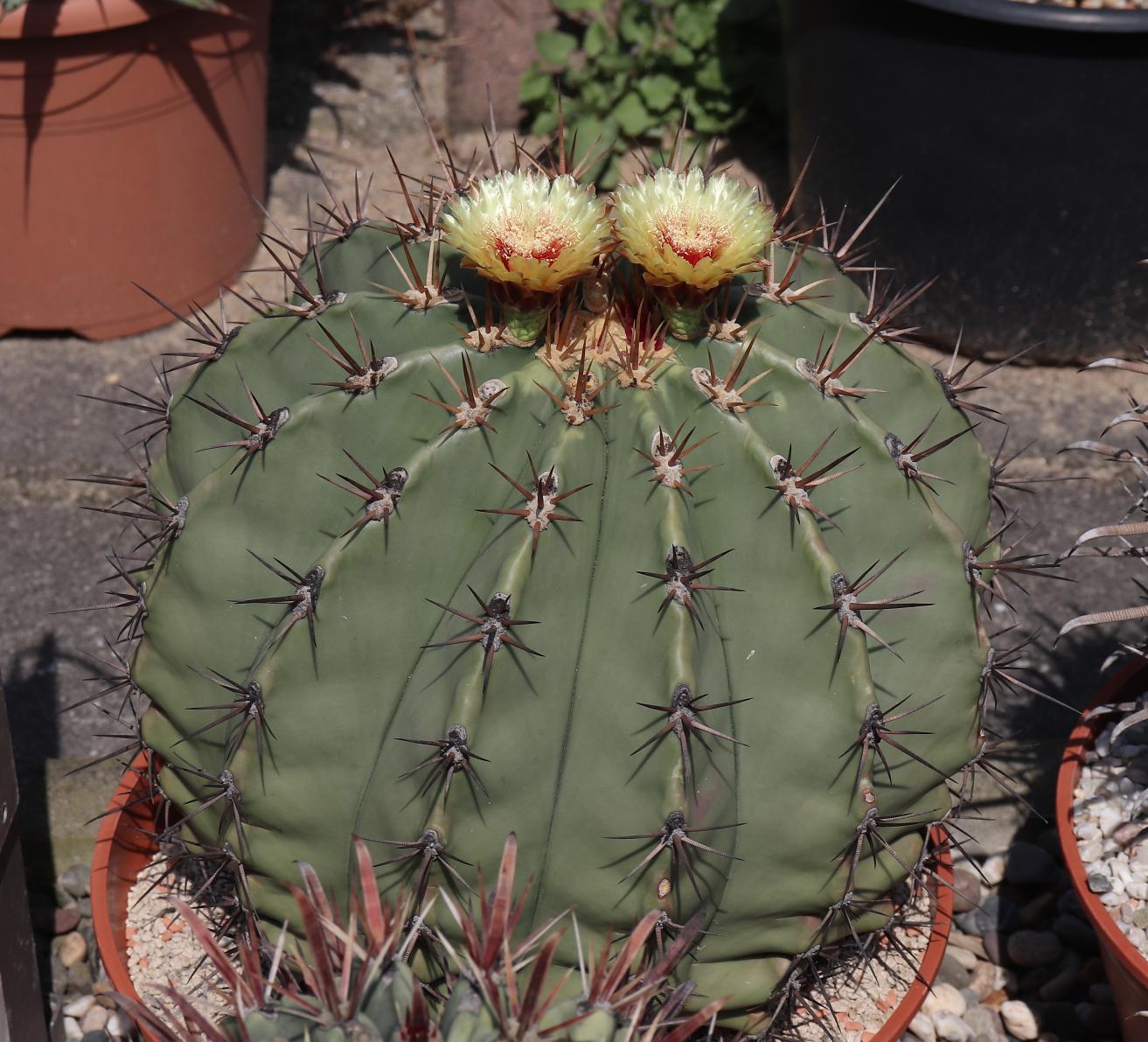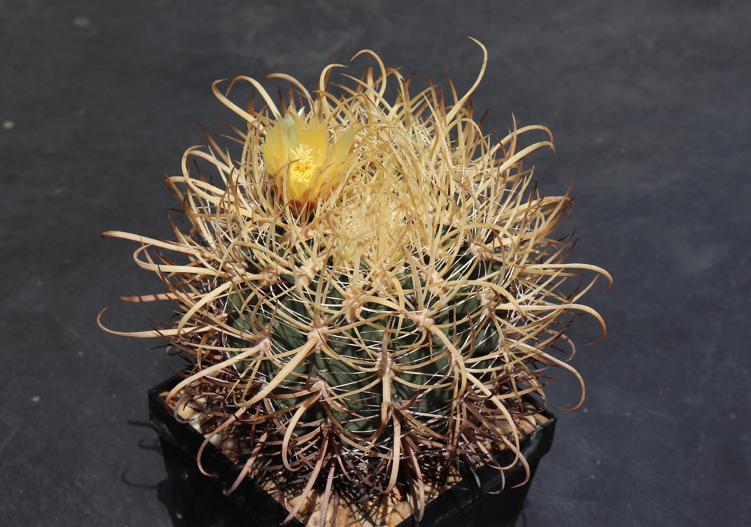 15 Jahre alt, nur ca. faustgroß und blüht zum ersten Mal: Feroc. lecontei X coloratus-Hybride