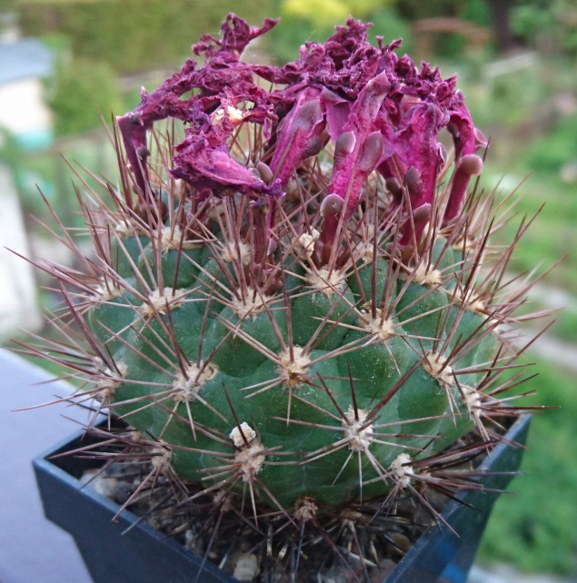 ...diese zwei + eine habe ich etwa vor einem Jahr von JPR bekommen...aber leider nur diese eine wird blühen, die dritte ist zwar genauso gross wie diese fast blühende, aber keine Knospe...Dm ohne Dornen etwa 7cm...