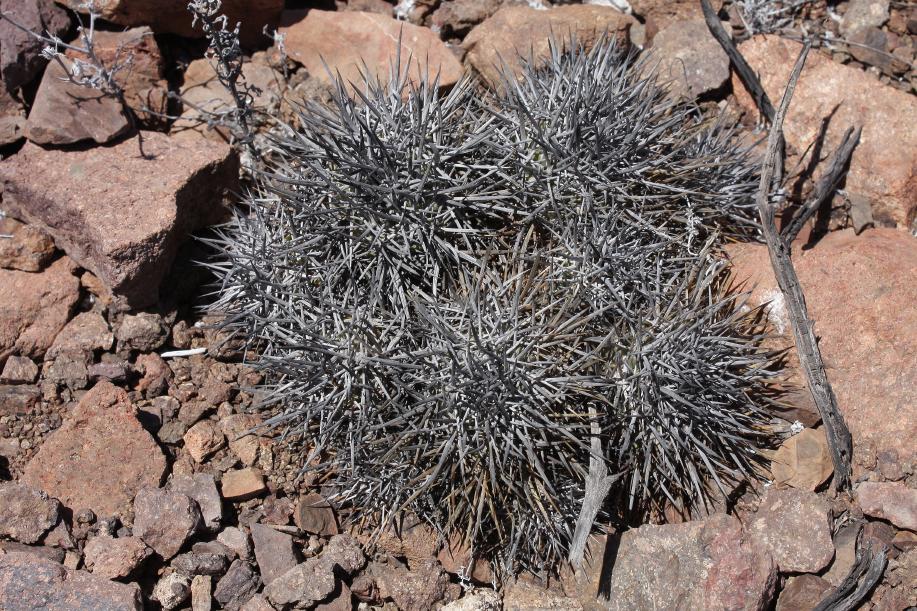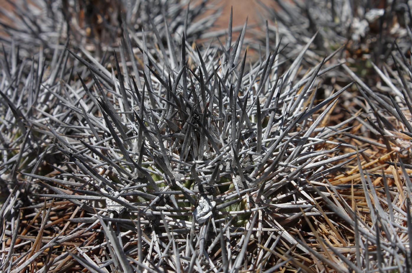 Das Vorkommen für Cop. desertorum wir von Ritter als "Östlich von Cifuncho am Weg nach Las Breas ..." angegeben. Das entspricht dem, wo auch wir "unsere" Cop. desertourum gefunden haben. Sie entsprechen auch der Beschreibung "... dichte Haufen bildend ..." oder "St.: schwarz oder grauschwarz ..., pfriemlich, gerade ...".