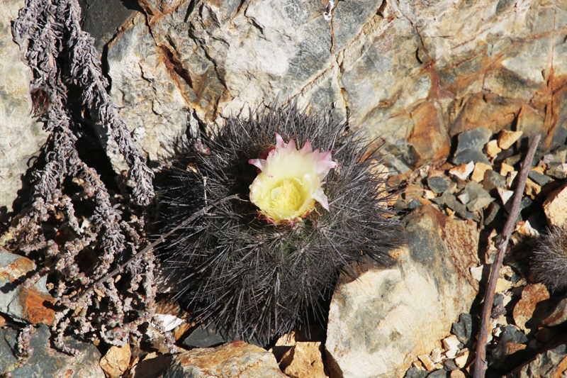 Der eigentliche "Star" in der Quebrada ist aber die Copiapoa decorticans. Leider kann man solche großen Gruppen bodennah nach den letzten heftigen Unwettern in Chile nicht mehr finden.