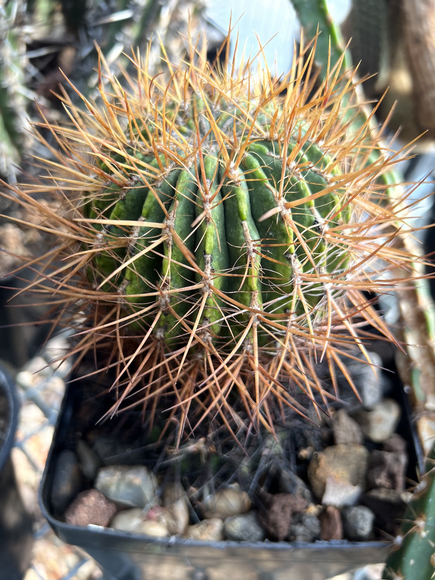 Ich bin mir nicht sicher ob es ein Ferocactus ist oder ein Echinocactus.