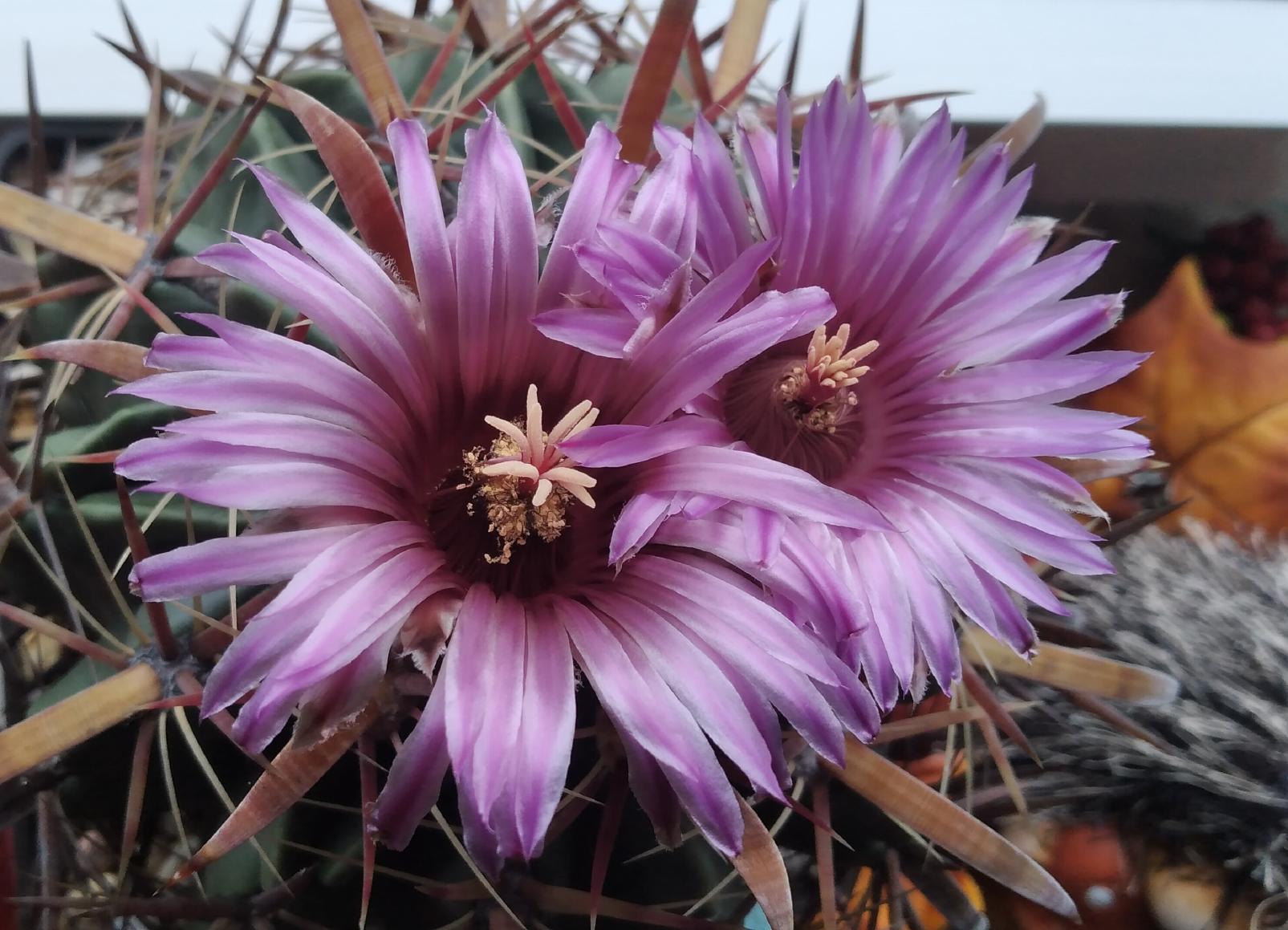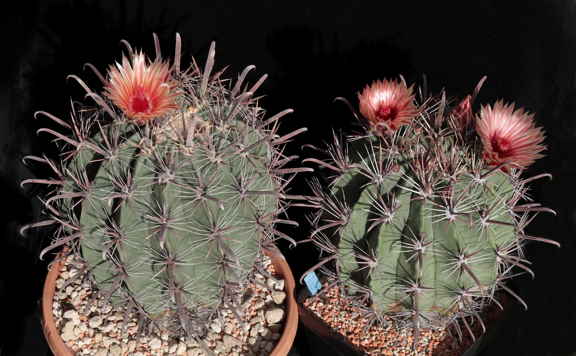 Wenn ich beide Pflanzen so betrachte, kommen mir allerdings starke Zweifel, ob der "Townsendianus" überhaupt ein F. townsendianus ist. Bedornung und Blütenfarbe sind sehr ähnlich. Feroc. townsendianus hat üblicherweise auch nicht so rote Blüten ... .