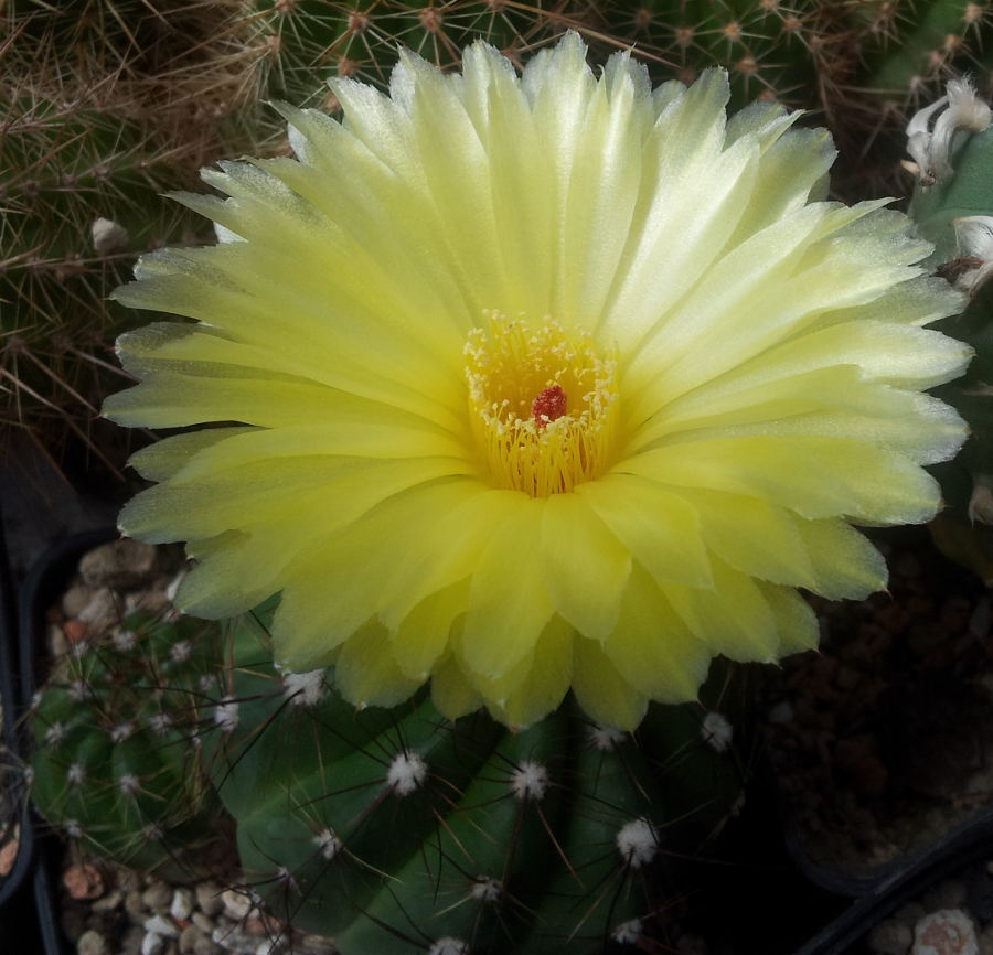 in den letzten Tagen hat bei mir Notocactus ottonis geblüht. Eine sehr schöne große Blüte im Gegensatz zum Pflanzenkörper finde ich.