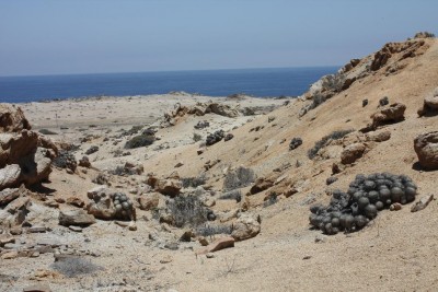 eine recht große Pflanze mit runden Rippen (reinrassig ?) ... neben einer „normalen“ ... oder mit fast schon höckerigen Rippen ... oder mit für grandiflora kräftiger Bedornung ... oder, na ja, ihr seht schon ... Diese Pflanzen würde ich als Hybriden ansehen wollen ... Ein letzter Blick durch die Quebrada Guanillos in Richtung Küste, bevor wir ... ... zum Abschluss noch einen kurzen Sprung in den Nationalpark "Pan de Azucar" machen. Dort gibt es Cop. grandiflora ... ... auch direkt neben Cop. columna-alba. Viele Grüße