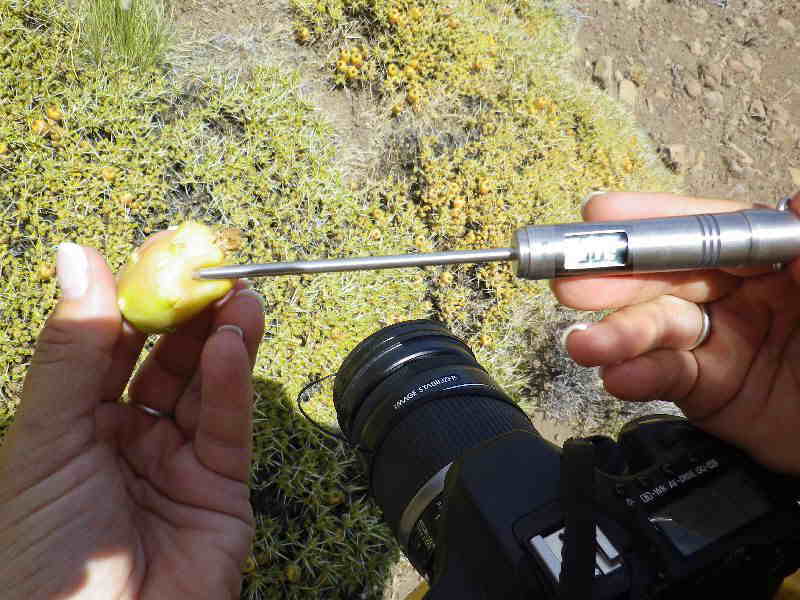 Lisi hat mit ihrem Bratenthermometer die "Kerntemperatur" der Früchte gemessen, nachdem sie sich beim Anfassen der Früchte die Finger verbrannt hat. Stolze 50 Grad waren das Ergebnis.