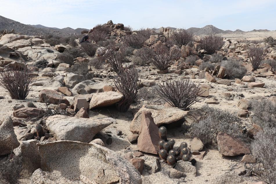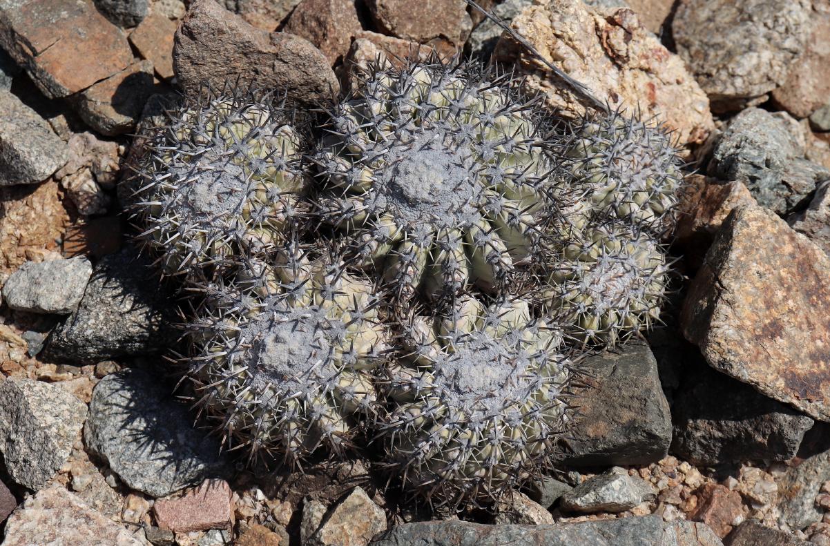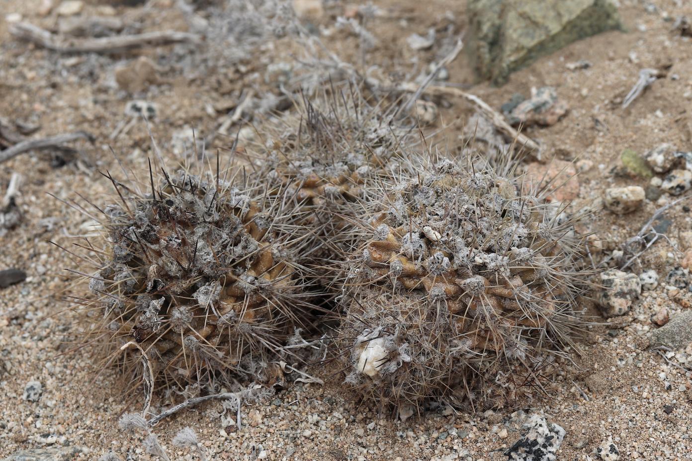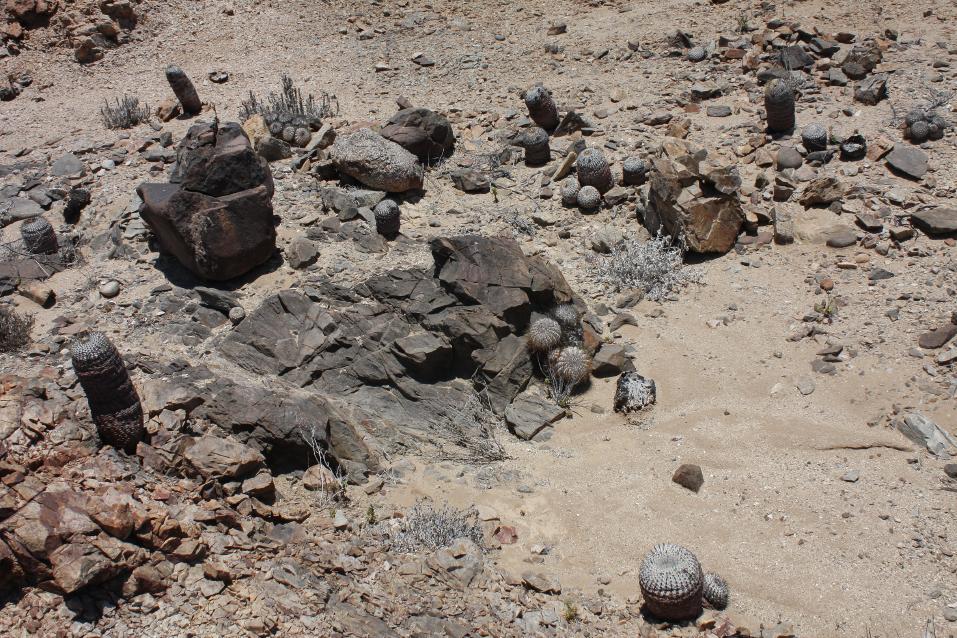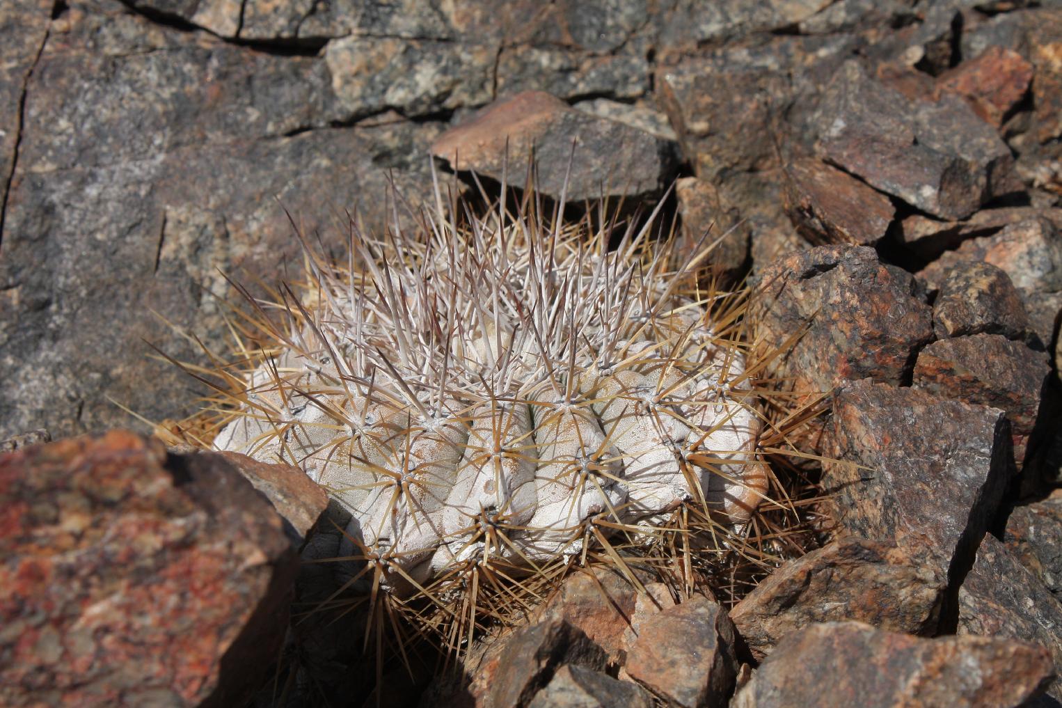 Als Begleitflora gibt es wenige, deutlich größere (knapp 20 cm Durchmesser) Eriosyce rodentiophila -Pflanzen ...