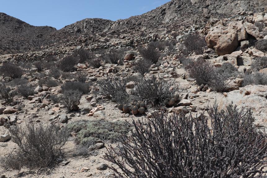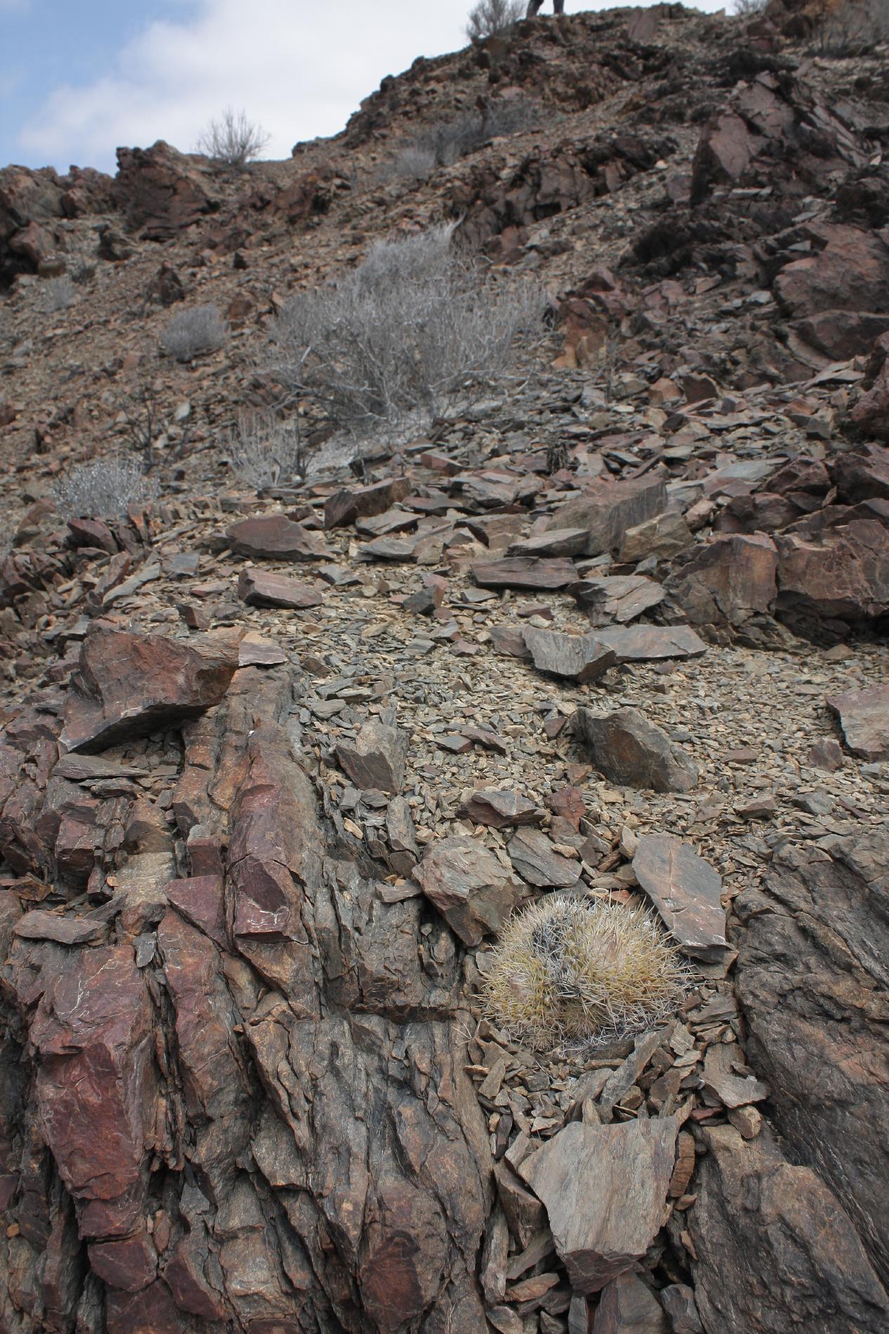 Wenn man direkt rechts in der Quebrada den ersten echten Hügel hochgeht (ist nicht steil) findet man Copiapoa leonensis (eine C. humilis Form).