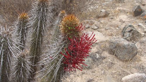 Ständige Begleiter waren an allen Fundorten herrlich bedornte Eulychnias, von denen viele von dem leuchtend roten Schmarotzer Tristerix befallen waren.