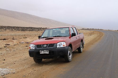 P.S.: Für CABAC: der metallicrote Blitz in Chile das ist unser 2x4 Nissan Terrano Diesel, den wir diesmal von Seelmann erhalten haben.