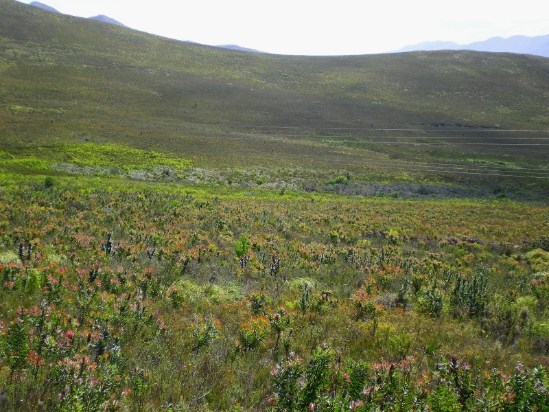 durch Wälder von Proteas und Apfelplantagen, die Bäume blühten im Oktober, Blick in den Norden auf den schneebedeckten