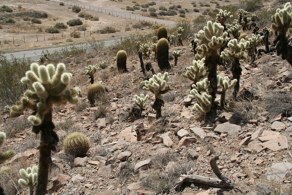 Neben den Feros (oder ist es eher umgekehrt?) gibt es "Teddybär-Opuntien" (Opuntia bigelovii) und vereinzelt Echinocereus engelmannii.