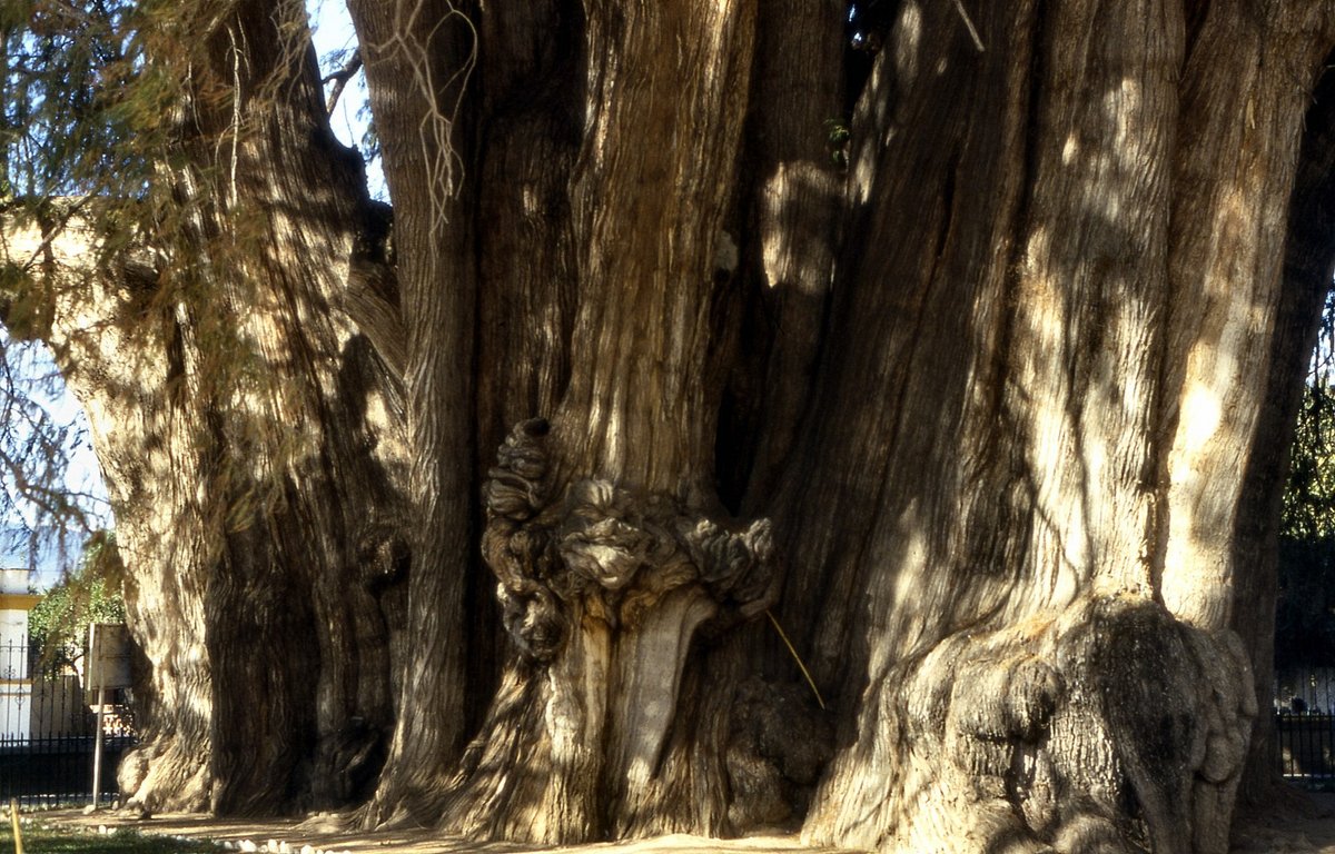 Zurück im Tal besuchen wir noch einen der mächtigsten und ältesten Bäume dieser Erde. Es ist eine Mexikanische Sumpfzypresse (Taxodium mucronatum), 54m Umfang, 2000-(6000) Jahre alt in Santa María del Tule, Oaxaca. Nicht vorstellbar, was dieses Gewächs schon alles erleben durfte...