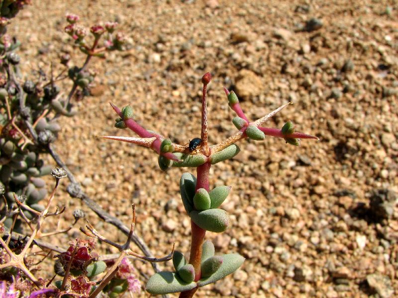 530 Aridaria sp. oder Stoeberia sp. (Aizoaceae) An den Triebspitzen, wo sich der verzweigte Blütenstand befand, war die Pflanze auffällig rot gefärbt.
