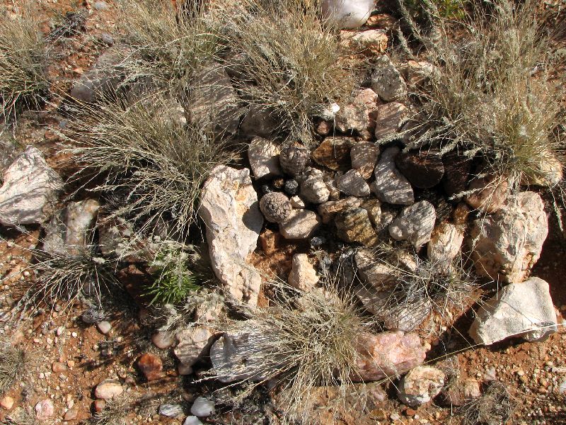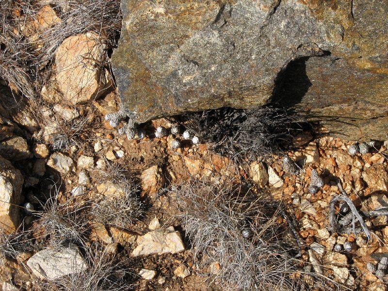 565 Anacampseros baeseckei (Portulacaceae) Hätten wir 100 m vorher oder danach angehalten, hätten wir diese Pflanzen nicht gefunden, denn die Population war relativ begrenzt.