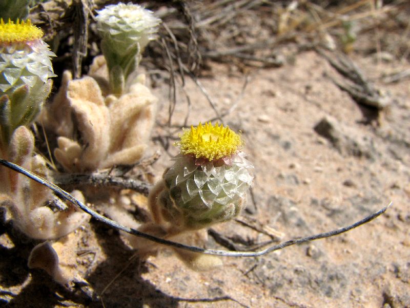 573 Helichrysum sp. (Asteraceae) 574 Helichrysum sp. (Asteraceae) Und wie bereits am ersten Tag, auf der Fahrt nach Swakopmund, wuchs auch hier eine Fagonia.