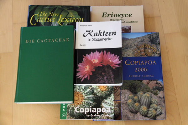 Daneben benutzen wir natürlich auch die "Klassiker". Bei der Vorbereitung dürfen Backeberg, Ritter und neuerdings das "Bilderbuch" von Hunt einfach nicht fehlen. Für die Passagen im südlicheren Teil unserer geplanten Reiseroute benötigen wir noch die Hilfe von Kattermann für Eriosyce und Schulz sowie Charles für die Copiapoen.