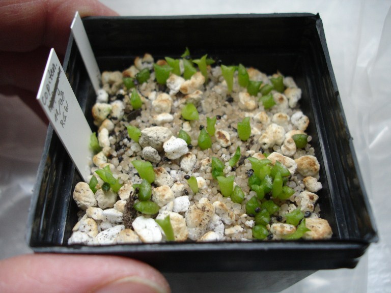 Vor gut 3. Wochen habe ich Parodia microsperma-Arten (P.rubristaminea,P.borthii,P.minuscula und Co.) ausgesäet,die Keimrate hat mich überrascht 100%.Meine Aussaat steht auf der Fensterbank (unter der Fensterbank ist die Heizung),anscheinend gefällt es dene da,so ein Wachstum hatte ich vorher noch nie und das alles ohne Kunstlicht.