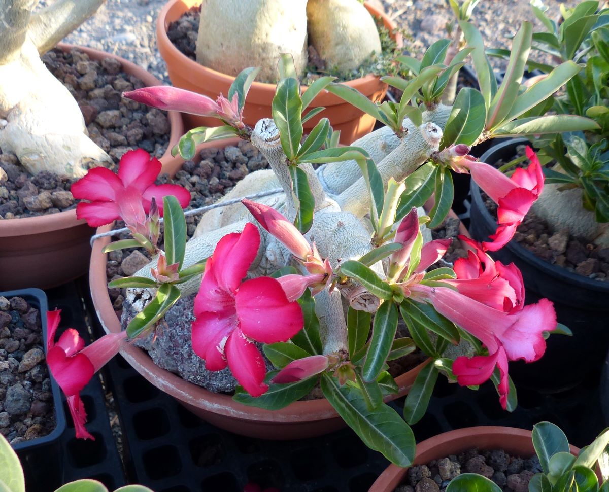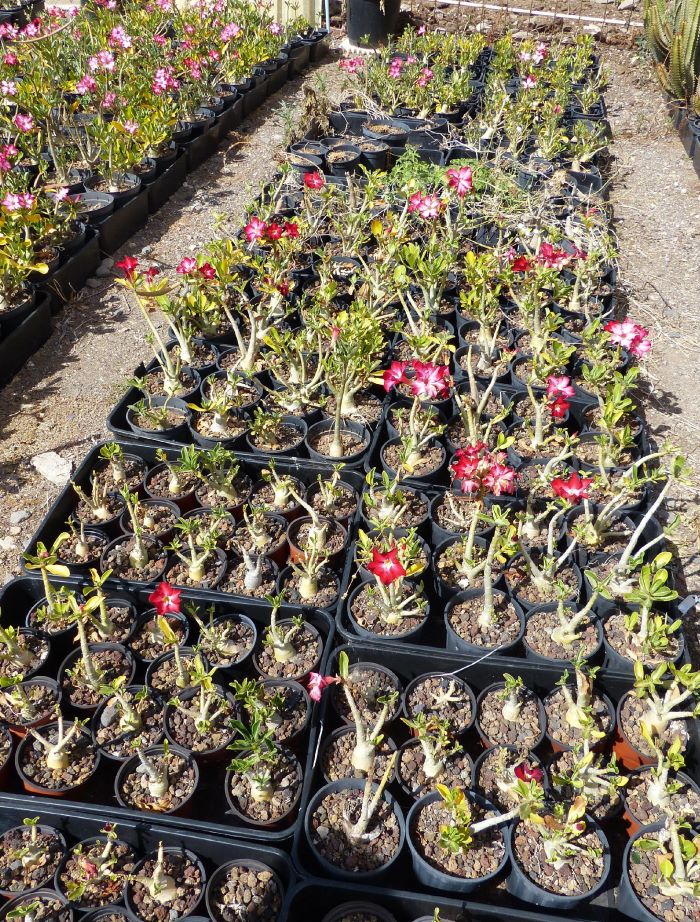 Hier auf Gran Canaria ist ein ideales Klima zum kulivieren von Adenium Pflanzen, viele Pflanzen erreichen nach einigen Jahren einen Caudex