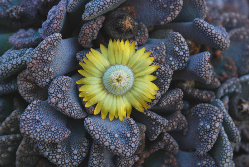 Titanopsis calcarea wächst im Sommer und blüht wie am 1. Januar geschrieben von November (ja, blüht schon!) bis Februar/März. Dabei steht sie bei mir so hell wie möglich und (fast) trocken.
