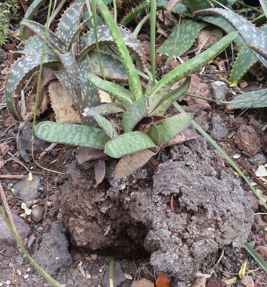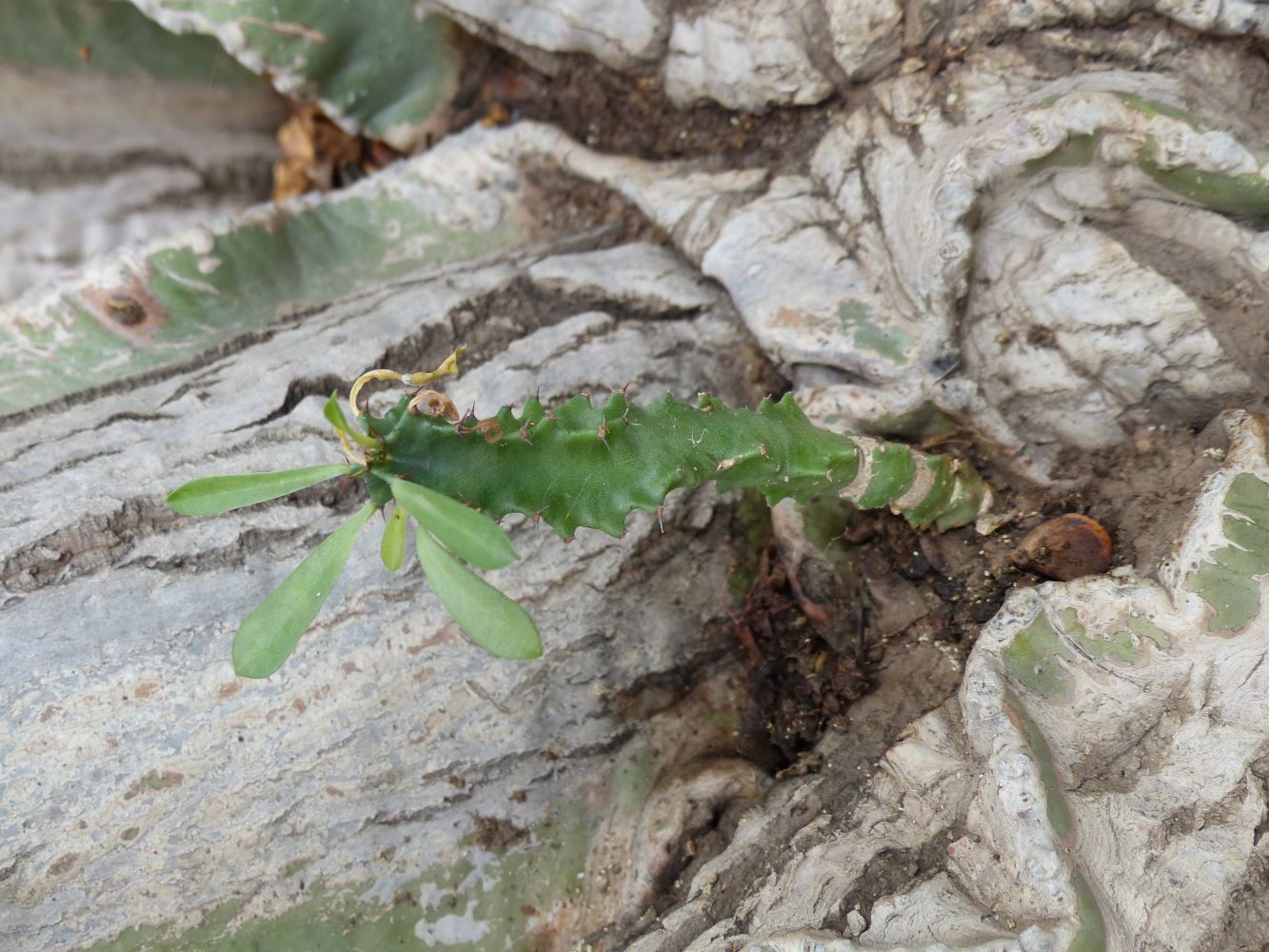 Hin und wieder verirren sich Samen in Pflanzenspalten und auf porösen Steinen und keimen und wachsen fast ohne Erde bei mir