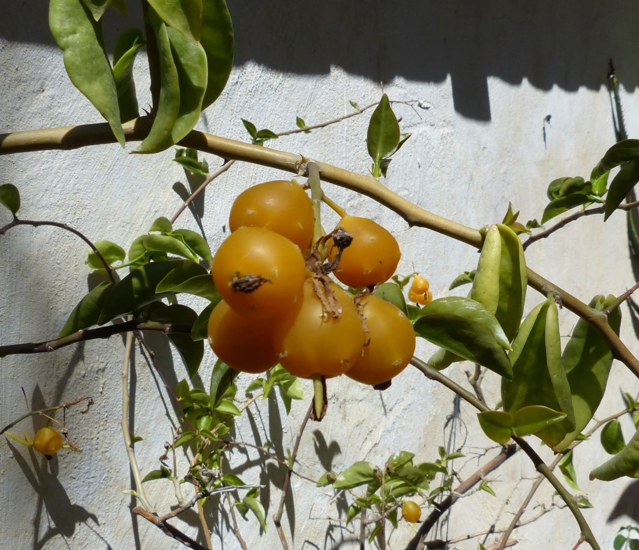Pereskia aculeata: Gelbe haselnussgroße Früchte, säuerlich, bißchen muffig
