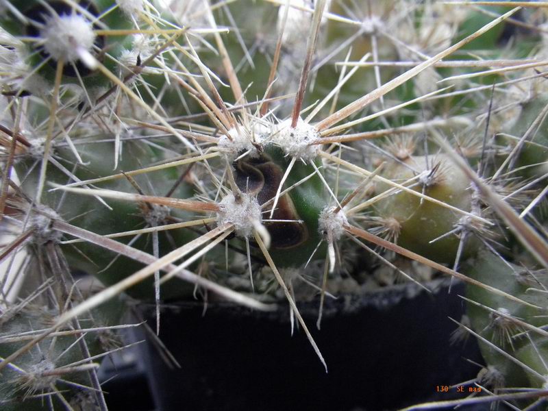2004 habe ich Corynopuntia schottii MK507 und Corynopuntia stanleyi SB1419gekauft. Nach rund 3 Jahren gutem Wachstum fingen die Pflanzen an jeden Winter an den neuen Trieben, die in den Bildern unten gezeigten schwarzen Flecken zu bekommen, die auch den ganzen Trieb umfassen können. Die Pflanzen hängen im Giebel des GW in voller Sonne bei rund 10°C. Die Luft wird fast ständig durch einen großen deckenventilator zirkuliert, wobei die betreffenden Pflanzen abseits, also nicht direkt unter dem Ventilator hängen.