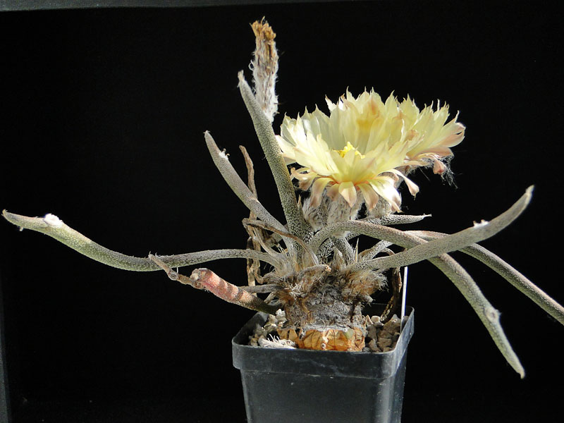 Das Ergebnis sah dann nach Jahren so aus. Eine dieser bewurzelten Pfropfungen hat letztes Jahr den Geist aufgegeben. Als ich den vertrockneten Rest schließlich rausgezogen habe, stellte ich fest, daß aus fast jeder der rübenartigen Wurzeln schon kleine neue Pflänzchen wuchsen.