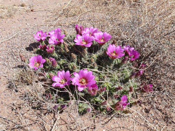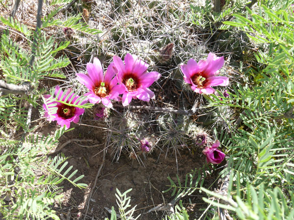 Die Pflanze entspricht fast genau den Pflanzen, die ich vor zwei Jahren im Norden von Coahuila, Mexico, fotografiert habe. Dort führt eine Schotterpiste östlich der Sierra del Carmen genau in Richtung Norden und rechts und links des Weges blühten große Polster mit vielen Blüten. Obwohl die Pflanze selbst nicht viel daher macht, die Blüten sind herrlich. Es gibt aber auch noch viel stärker bedornte Pflanzen mit bis zu 6 cm langen Dornen. Dadurch, daß E. enneacanthus ein sehr großes Verbreitungsgebiet hat, sehen die Pflanzen überall anders aus und es fällt auch mir schwer zusagen: das ist ein enneacanthus.