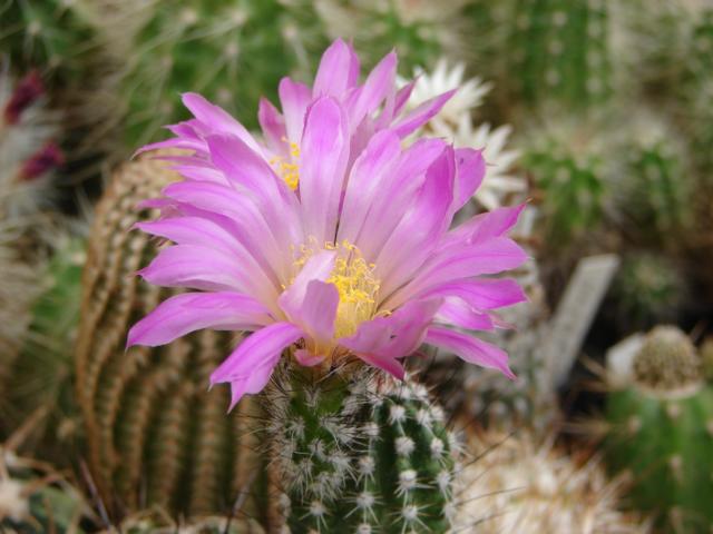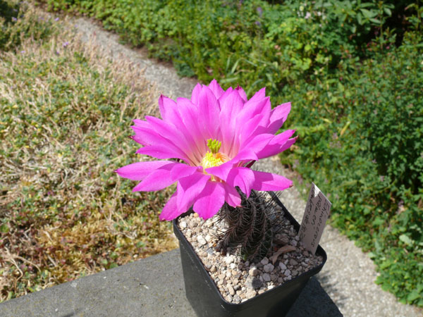 er blüht wieder: mein kleinster Echinocereus. Und wieder mit einer riesigen Blüte im Vergleich zum Pflanzenkörper.