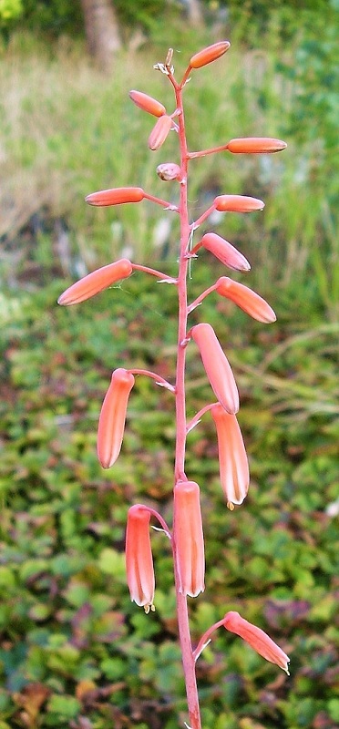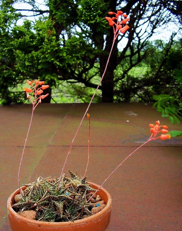 Für meine Erste habe ich den Namen, es ist Aloe descoingsii. Sie habe ich 1991 im Kakteencentrum Oberhausen gekauft. Insgesamt ein langsamer Wachser, aber sie belohnt mich jedes Jahr mit 3 bis 4 Blütenständen. Manchmal kommt noch eine leichte Nachblüte hinterher. Auch wenn es immer heisst, sie soll ein alkalisches Substrat haben, sie wächst auch wunderbar in meiner Mischung aus Lavagrus (2 - 6 mm):Neudohum Blumenerde 7:3. Von Anfang Mai bis Anfang Oktober steht sie (wie alle meine Pflanzen), nur mit einem Gemüsenetz gegen stärkste Sonnenstrahlung geschützt, im Freien. Im Winter können die Temperaturen schon mal an die 0° C gehen. Meine ganzen Klein-Aloe haben mit dieser kalten Überwinterung keine Probleme. Nur das die Winterblüher zum Blühen ans Zimmerfenster müssen, da die Blütenstände bei diesen Temperaturen eintrocknen. So hatte Aloe bakeri bei mir im Winter 2009/2010 schon 19 Blütenstände (leider kein Beweisfoto :oops: )