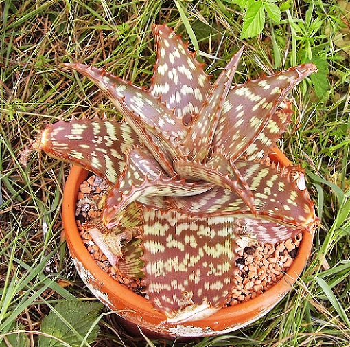 die nächste habe ich 1995 von einem Mitglied der Hannoverschen Kakteengruppe bekommen. Er hat sie, glaube ich, als Aloe capitata verkauft. Wenn sie denn mal blühen sollte, werde ich sie endlich bestimmen können. Ansonsten hat sie eine wunderschöne Sommerfärbung.