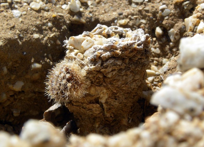 Dein Beitrag bringt mich etwas ins Zweifeln. An der Costa Esmeralda fanden wir einige Pflanzen, welche fürchterlich unter der Trockenheit litten und tief im Boden eingesunken waren. Ich hielt dies für Thelocephala esmeraldana. Oder täusche ich mich und es ist evtl. diese Copiapoa? Was denkt ihr? Grüße