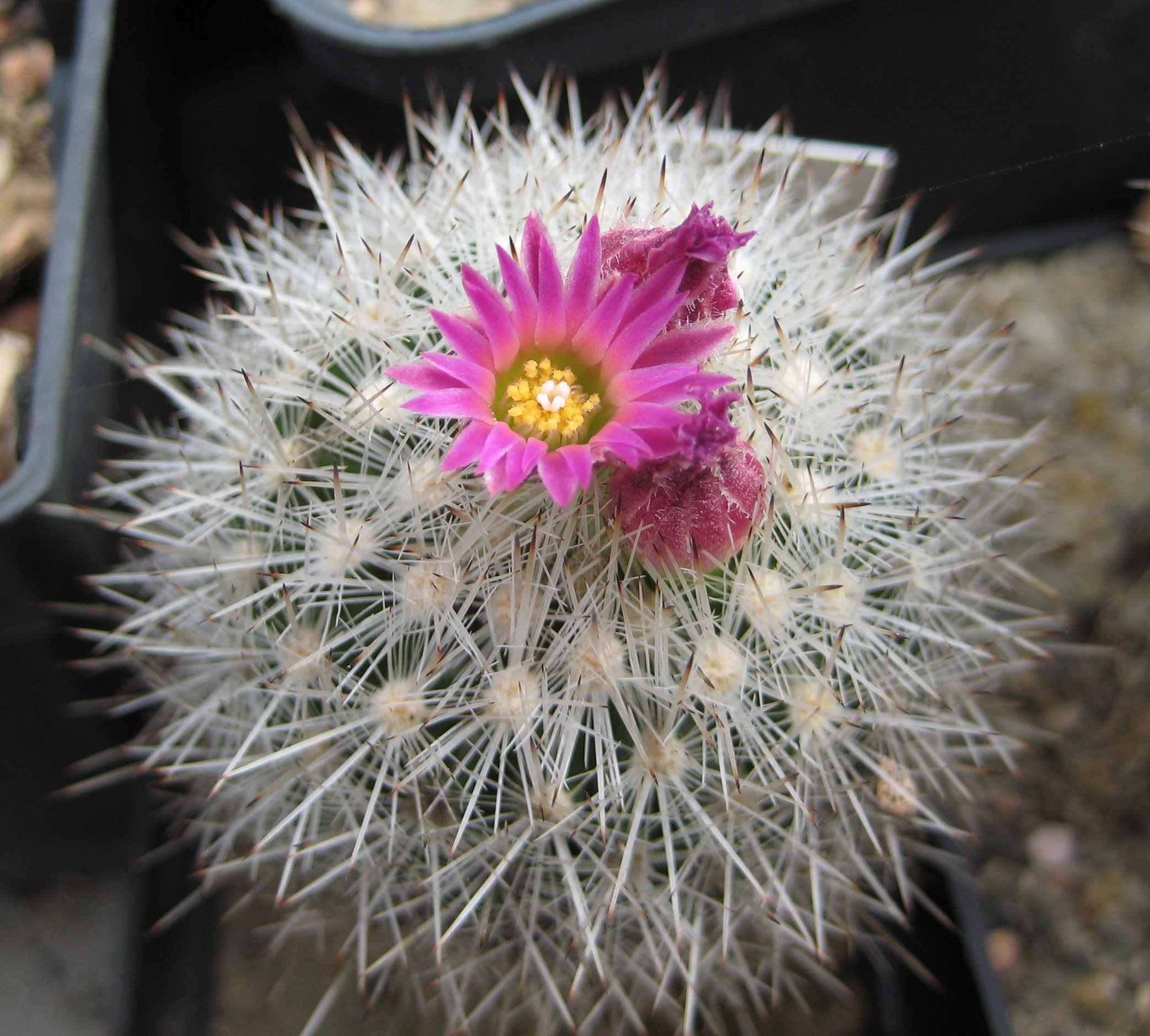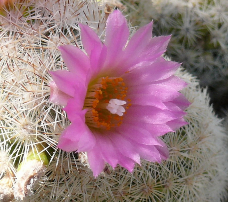 Deine abgebildete Pflanze erinnert mich an Escobaria rigida, könnte das sein? Die E. rigida habe ich in Mexico, im südlichen Coahuila in der Nähe von General Cepeda bei Cinco de Mayo viel gesehen, allerdings als vielköpfige Gruppen. Die blüht auch mehr in Scheitelnähe. E. henricksonii blüht mehr um den Scheitel herum, etwa wie eine Mammillaria elongata oder viperina.