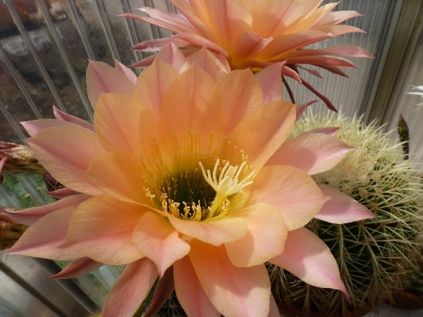 Bei einer Sammlungsauflösung habe ich unter anderem zwei Trichocereus-Hybriden, die nun erstmals bei mir geblüht haben.