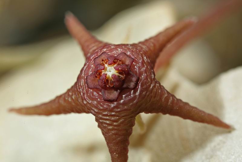 Die Art ist mein kleinster Liebling unter den Stapelien - erst vor wenigen Jahren wieder in Angola gefunden, ist es kaum zu glauben, dass die winzigen Blüten recht eng mit Stapelia gigantea verwandt sein sollen. Uli (= Asclepidarium) hat sich zum fotografieren wieder einmal richtig Zeit gelassen und ich finde das Ergebnis sehenswert.