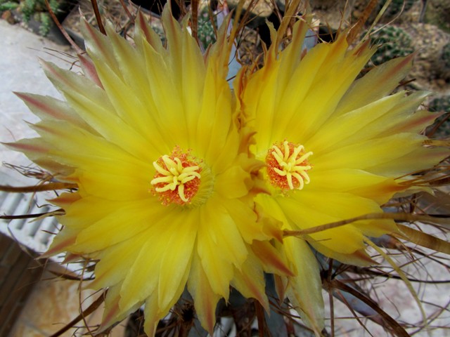 eine von meinem beiden Leuchtenbergia principis ist mit 2 Blüten erblüht.