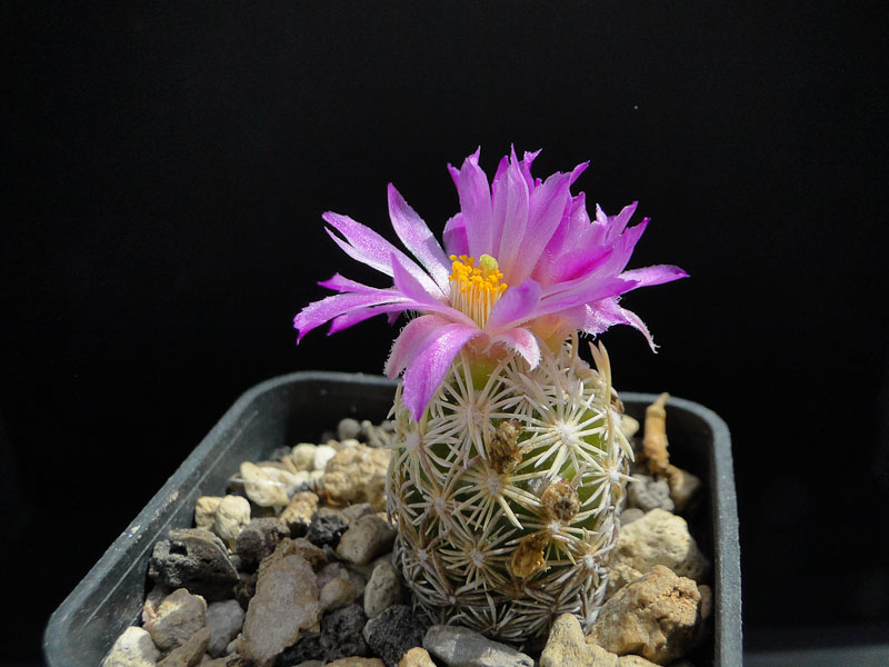 Ebenfalls Blütenpremiere hatte Esc.guadalupensis: Die Blüten sehen wie eine verkleinerte Version von Esc.missouriensis aus: Mit Ausnahme der erst dieses Jahr hinzugekommenen Esc.dasyacantha (?) habe ich alle diese Escobarien im Freien mit Regenschutz überwintert. Für sachdienliche Hinweise zu den Namen wäre ich sehr dankbar!