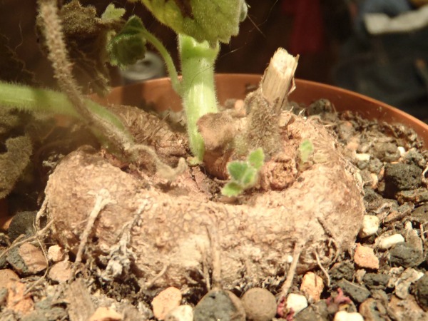 ich habe hier eine unbekannte Sinningia. Die Knolle ist oval und hat in der Mitte eine Vertiefung. Die Blüten erinnern an Sinningia cardinalis oder Sinningia iarae, stehen aber nicht zu mehreren an einem langen Blütenstiel, sondern entspringen einzeln direkt an den Trieben.