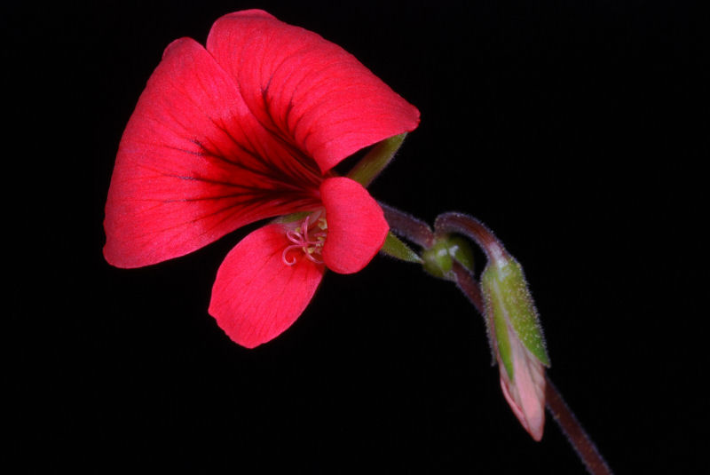 Die Pflanze an sich ist eher unscheinbar, die Blüte an den langen Blütenstielen ist allerdings von einem Geranien-Rot, das wirklich die Blicke auf sich zieht! Gruß
