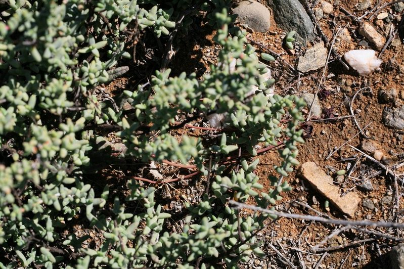 Unser Problem war auch, dass aufgrund der guten Regenjahre 2006 und 2009 die Stachelschwein-Populationen "explodiert" sind und im Moment dabei sind alles wegzufressen, was auch nur ein bißchen grün ist. Das Bild zeigt eine fast weggefressene Tridentea marientalensis subsp. albipilosa.