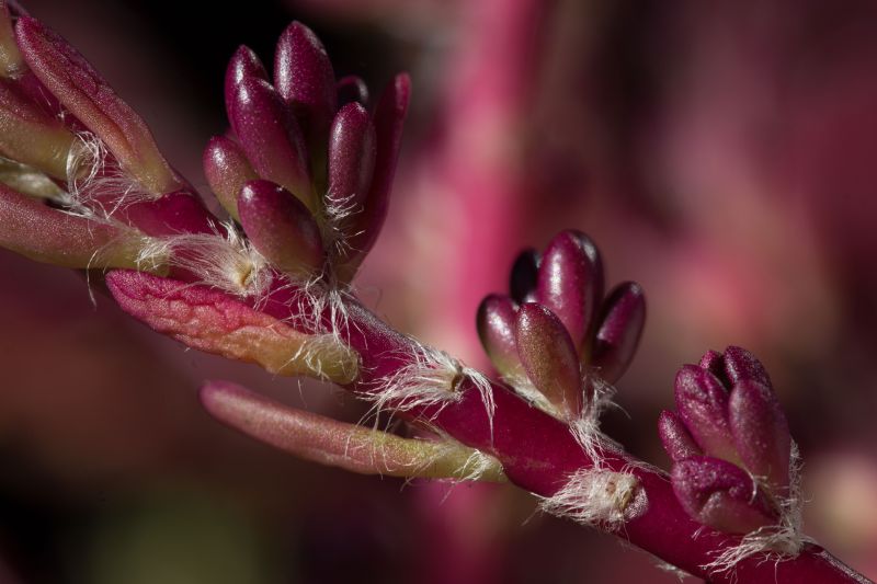 Mittlerweile braucht sie keine Blüten mehr; die gesamte Pflanze hat sich intensiv violett gefärbt: