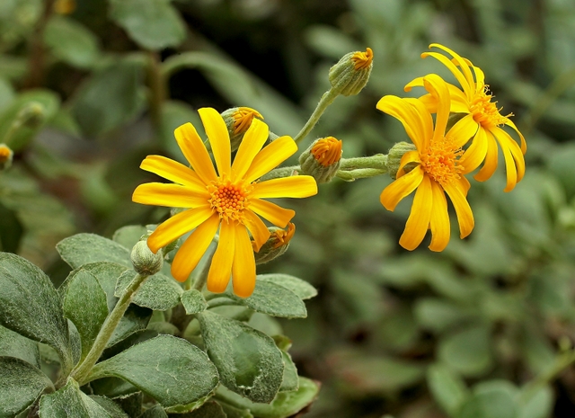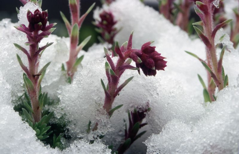Saxifraga sempervivum zu blühen begonnen. Macht dieser Steinbrech immer um diese Zeit, auch bei wesentlich winterlicherem Wetter, wie die erste Aufnahme (aus 2014) zeigt.