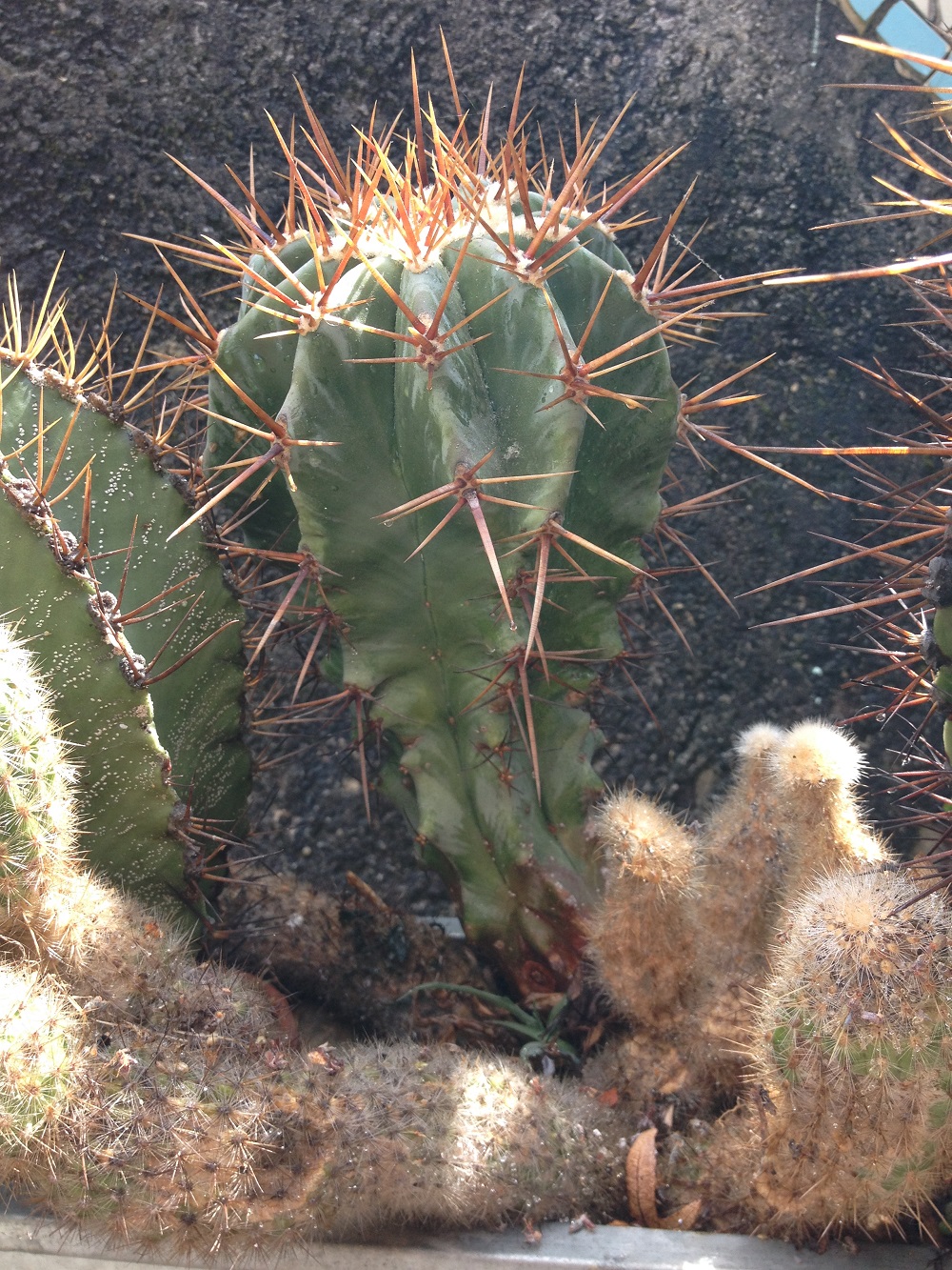 ich heiße Harald und ich habe mich hier angemeldet, weil ich gerne eine Antwort hätte auf die Frage was das nun für ein Kaktus ist. 2001 habe ich eine gemischte Saamentüte ausgesäät und da ist unter anderem dieser Kaktus aufgegangen. Er war von Anfang an schön blau bereift und da habe ich ihn veredelt. Anfangs wuchs er säulig mit wenigen Rippen, doch seit einigen Jahren legte er an Dicke zu und sieht jetzt aus wie ein Kugelkaktus. Er ist schön blau bereift und hat kräftige bis 5cm lange Dornen, die Höhe ist jetzt 30cm bei 14cm (ohne Dornen) Durchmesser.