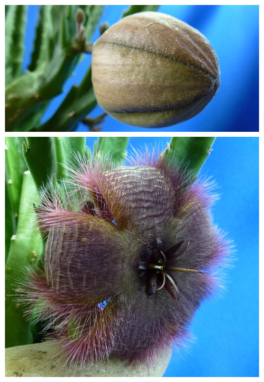 Ich schwanke bei allen zwischen Stapelia hirsuta, gettleffii oder eben Hybriden. Gibt es irgendwelche Merkmale die eine hirsuta oder gettleffii Blüte erfüllen muss um sie eindeutig zuordnen zu können?