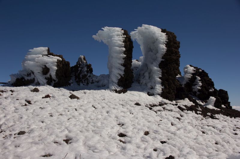 La Palma, Nordküste La Palma ... sondern sehr spezielle Eisformationen auf dem höchsten Gipfel La Palmas, dem Roque de los Muchachos: Bis neulich