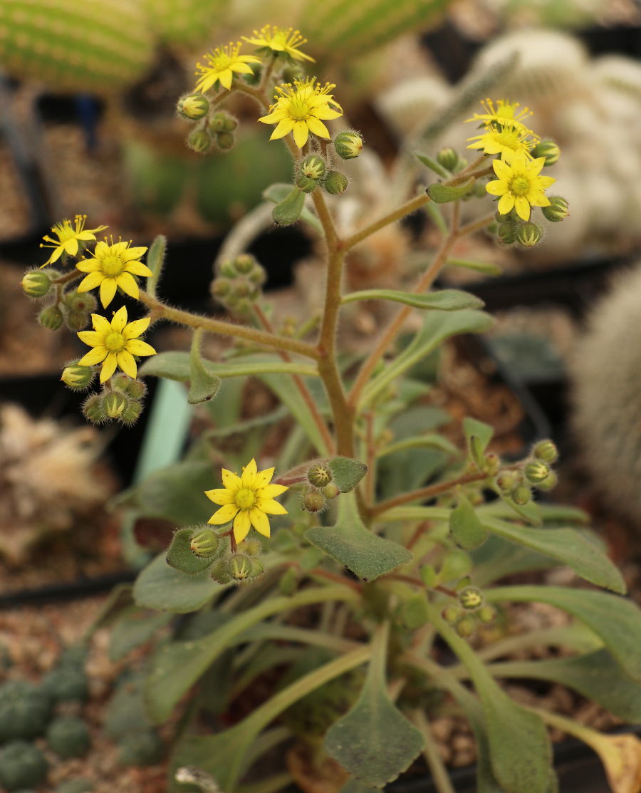 manchmal ist überraschend mehr drin ... Abgesehen davon, dass Du diese üppige Blüte genießen konntest (und das im Winter), lässt sich durch den umfangreichen Blütenstand der Kreis der "Verdächtigen" deutlich einengen: Den gibt es nicht bei allzu vielen Aichryson. Z.B. kann man Aichryson bollei nun sicher ausschließen - auf mehr als 20 Blüten kommt die Pflanze nicht.